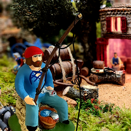 Découvrez notre Santon Pécheur 7cm assis sur un muret et fabriqué en argile, une pièce idéale pour enrichir votre décor de crèche de Noël à Aubagne en Provence.